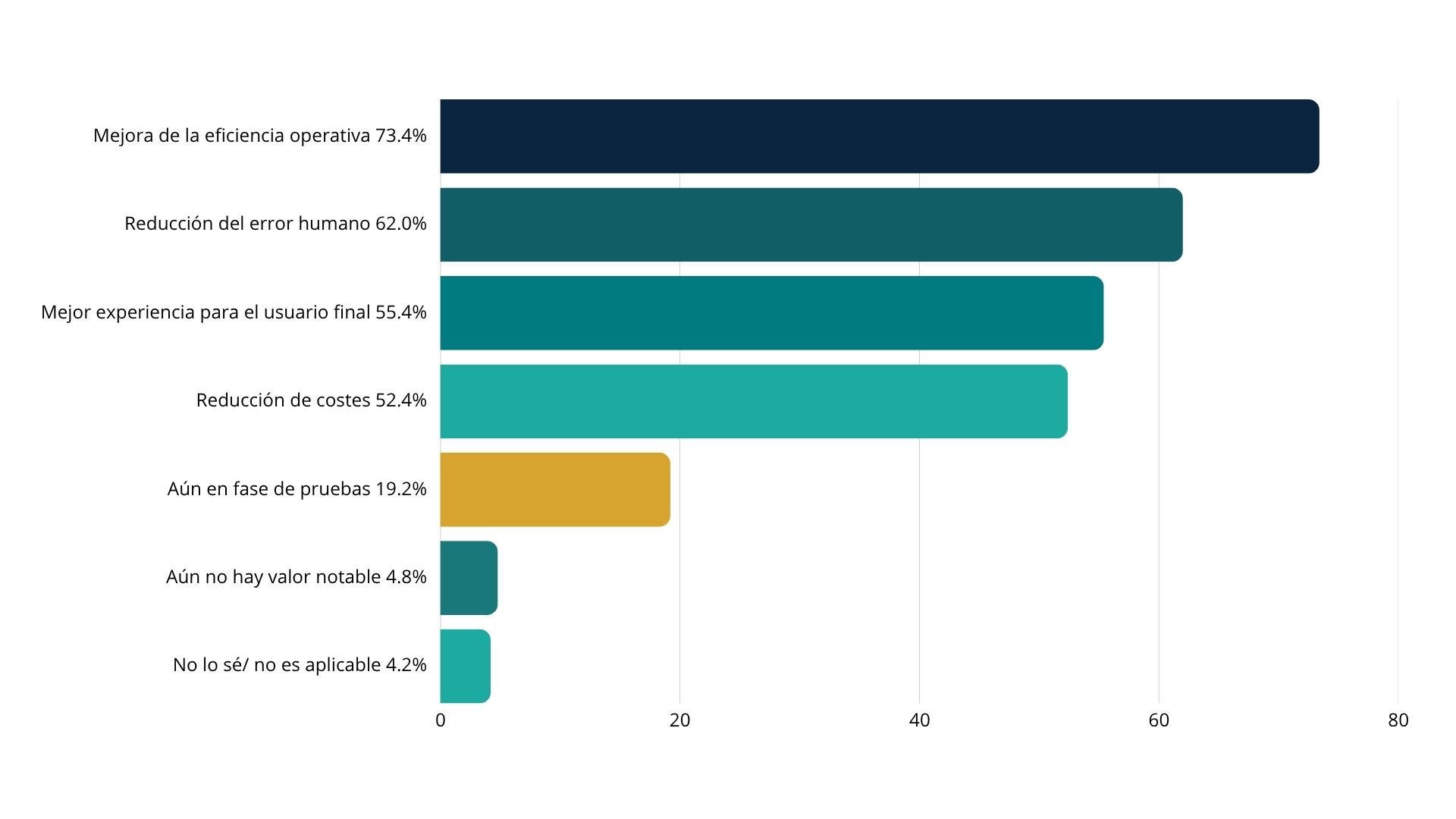 Uno de los principales aprendizajes del estudio es que el verdadero valor de la IA a gran escala no está solo en detectar más, sino en operar mejor. Entre los beneficios más destacados se encuentran mayor eficiencia operativa; reducción de errores humanos; y mejora en la experiencia del usuario.