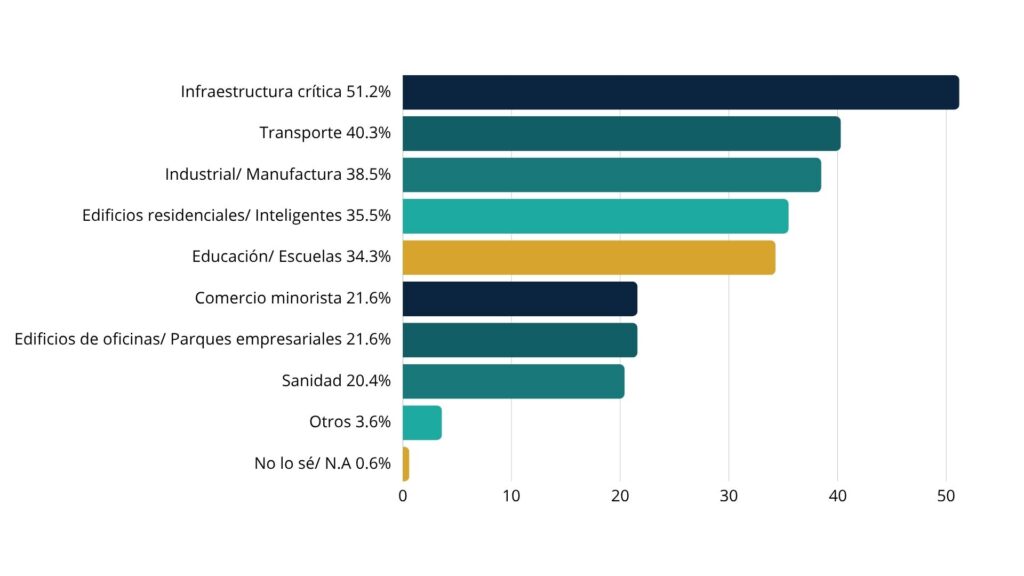 Por otra parte, las expectativas de adopción son especialmente altas en infraestructura crítica (51,2%), transporte (40,3%) e industria (38,5%). Se trata de entornos donde el volumen de información, la complejidad operativa y la baja tolerancia al error superan ampliamente la capacidad humana de análisis continuo. Allí, la automatización inteligente deja de ser una ventaja competitiva para convertirse en una necesidad.